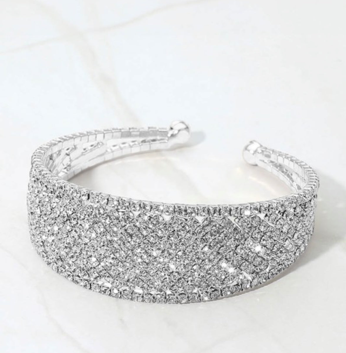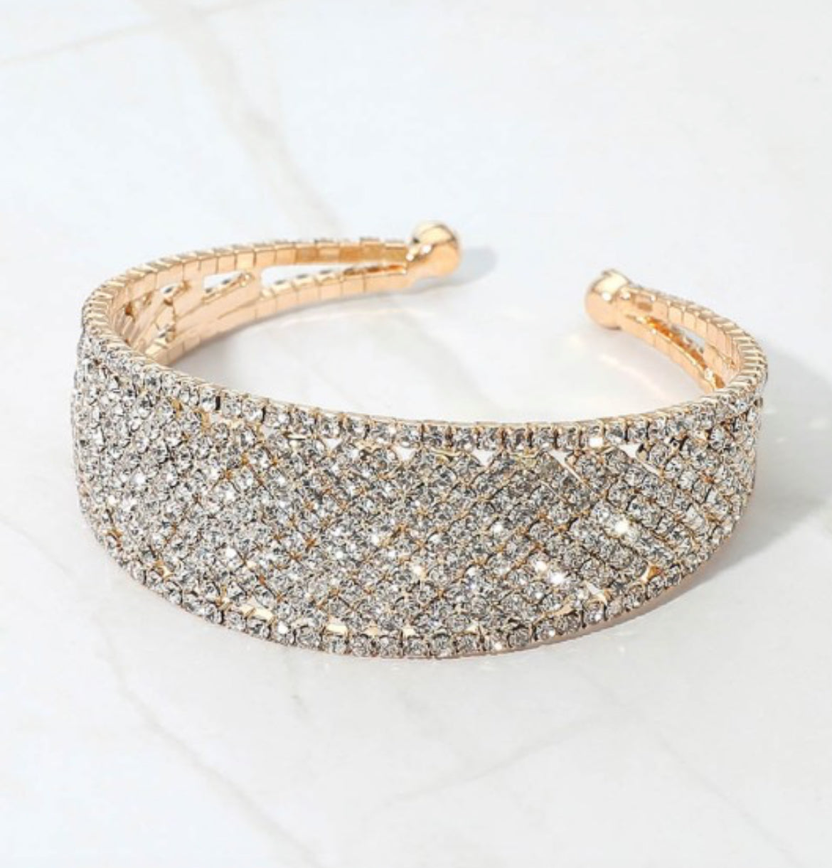 Wide rhinestone paved cuff bracelet -perfect for a glamorous event -.8 h