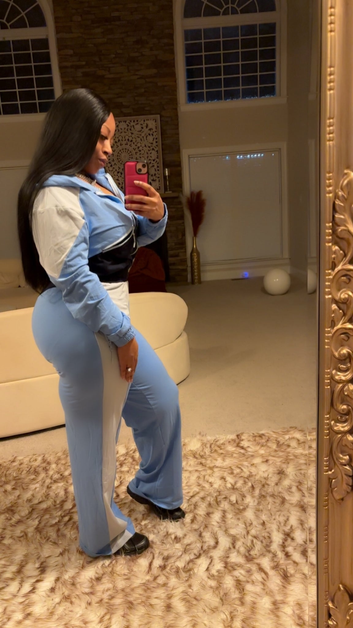 Color block 2 piece set -Blue stretchy color block set