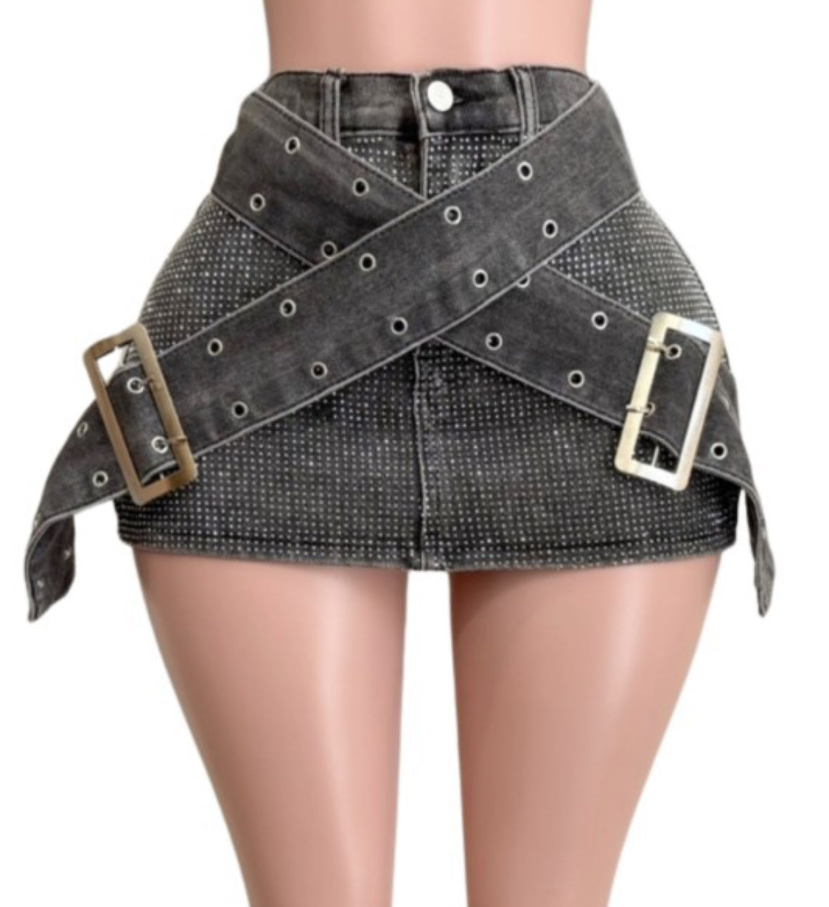 Mini black rhinestones skirt -rock star skirt -great stretch -fits true to size