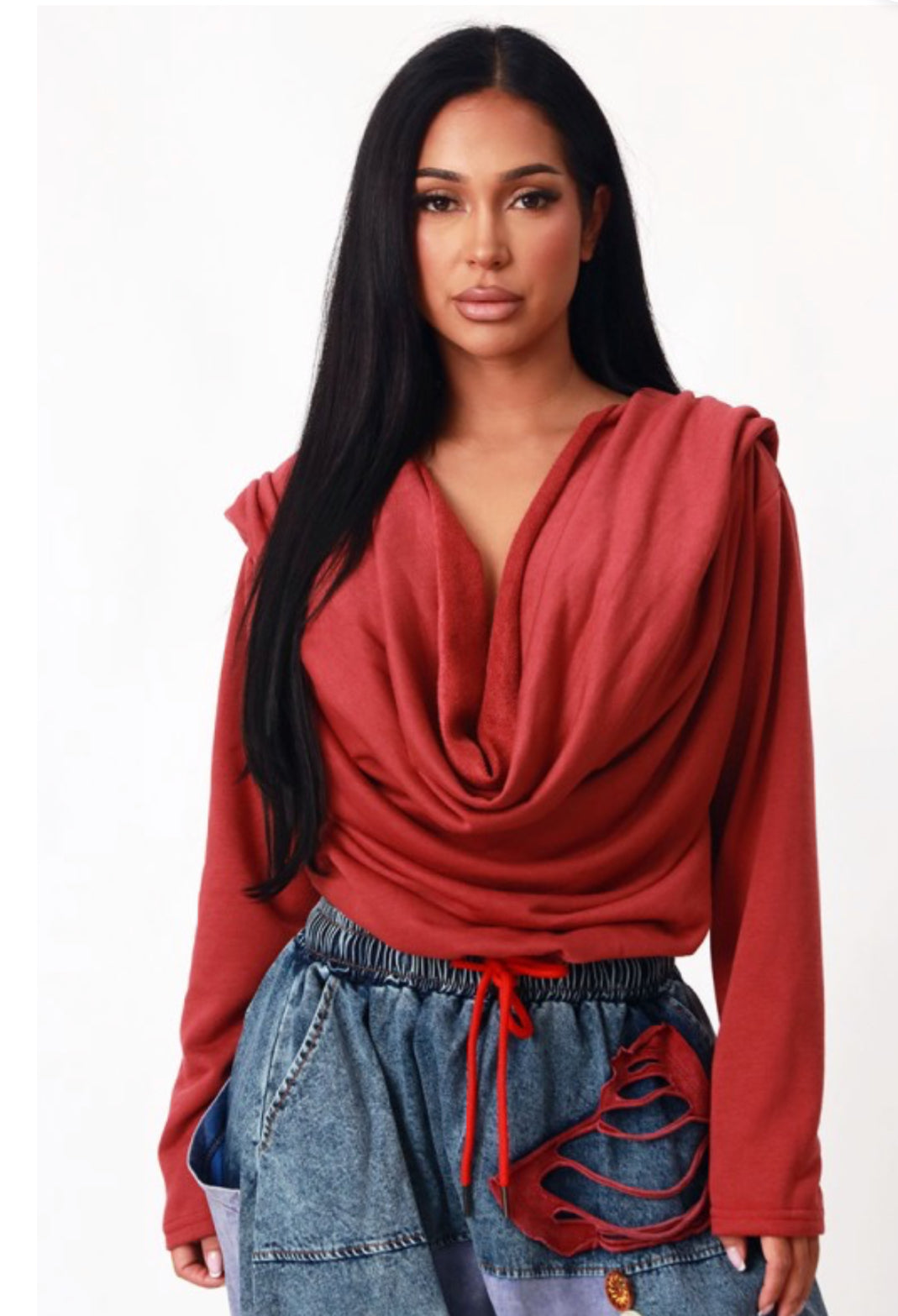 Twisted hoodie oversized layered sweatshirt top