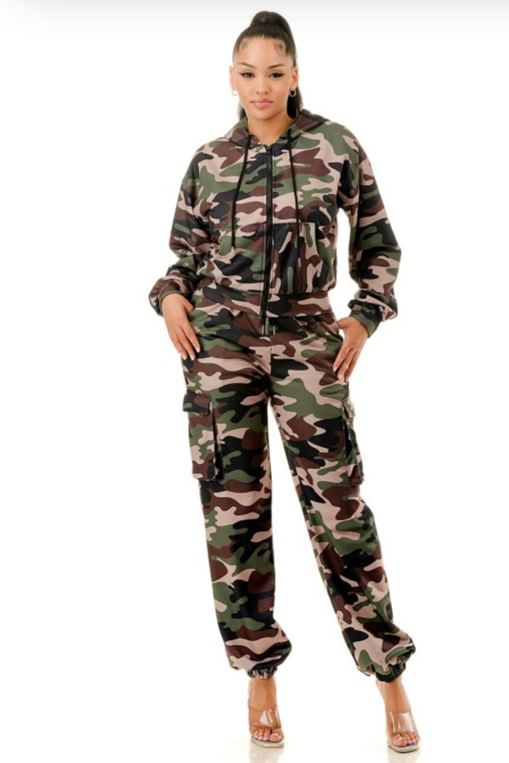Army set -jacket and jogger pants -zip front hoodie -oversized —fits big