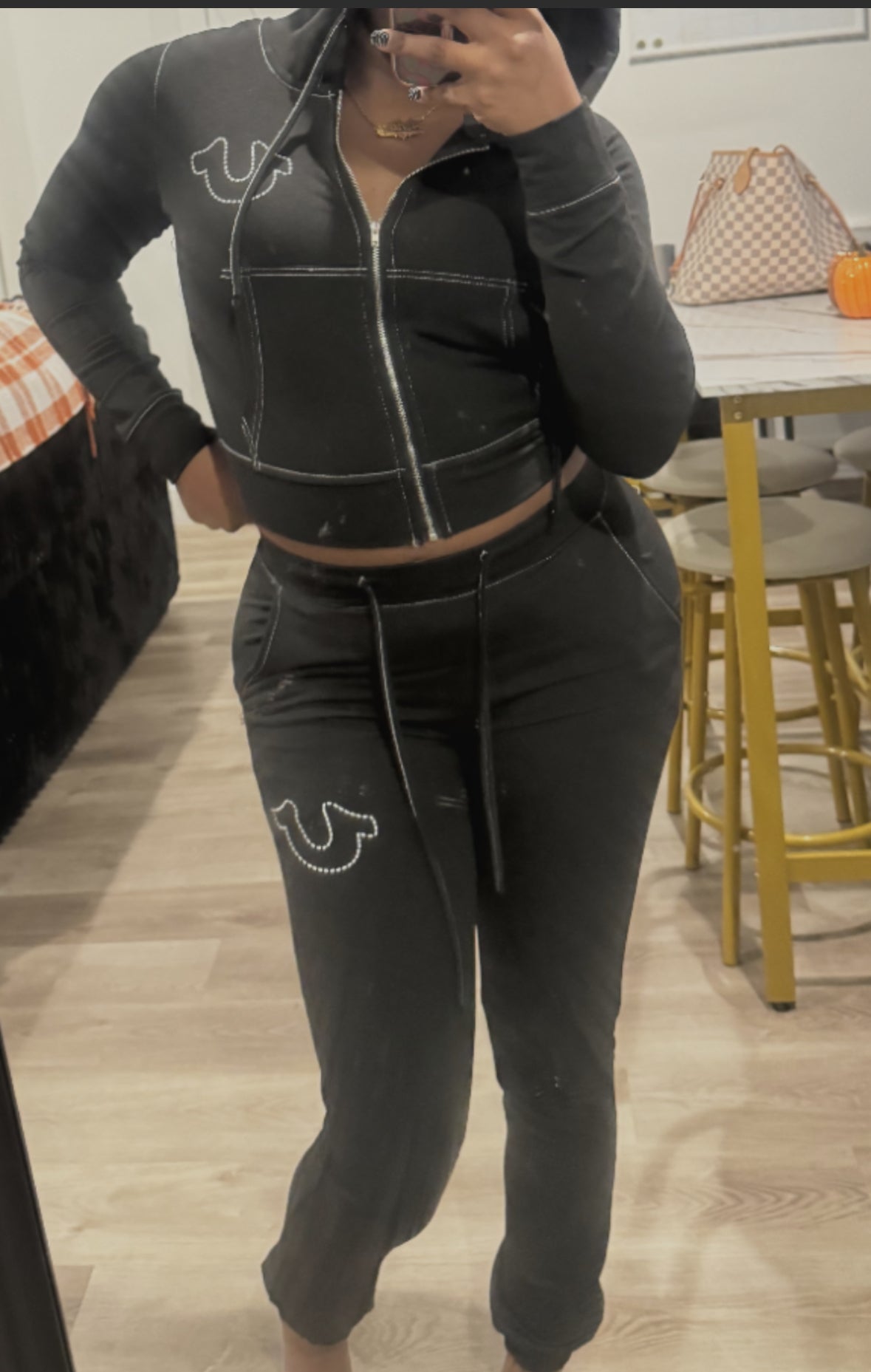 2 piece set -color black - model fits size small great stretch pre order item ships Nov 20th